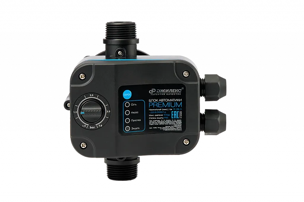 Автоматический запуск насоса: При снижении давления в системе ниже заданного уровня блок автоматики самостоятельно запускает насос, обеспечивая непрерывную работу системы.