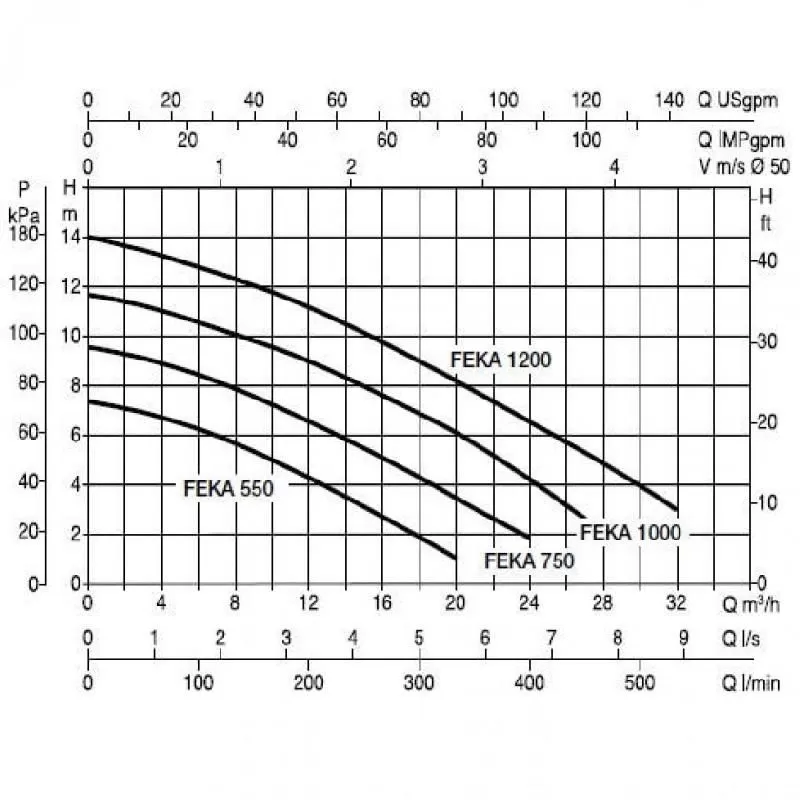 Графические характеристики фекального насоса DAB FEKA VS 1200 M-NA