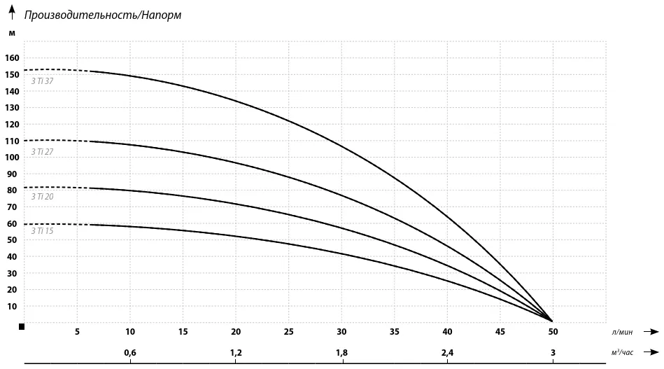 Графические характеристики насоса для скважины IBO 3Ti 20 кабель 20 метров