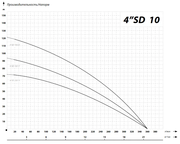 Трехфазный глубинный погружной насос IBO 4SD 10/22 (380В) диаметром 98 мм с повышенной устойчивостью к песку. Насос IBO 4SD 10/22 (380В) доступен к покупке с двигателями IBO и итальянскими двигателями IBO ITALY. В насосе IBO 4SD 10/22 (380В) используется технология «плавающих лопастных колес», а также для основных рабочих элементов насоса применяются износостойкие материалы: латунный нагнетательный патрубок, корпус, вал и сетка фильтра выполнены из нержавеющей стали AISI 304 / а также лопастные колеса выполнены из высококачественной пластмассы, Благодаря этому насос IBO 4SD 10/22 (380В) имеет повышенную стойкость к песку. Насос комплектуется кабелем 1 м, по желанию его можно нарастить до нужного размера. Скважинный насос IBO 4SD 10/22 (380В) имеет отличные характеристики. Напор насоса в максимальной точке составляет 121 м, а производительность достигает максимального показателя в 21.6 м³/час. Мощность двигателя составляет 5500 Вт, то вполне неплохо для насоса с такими напорно-расходными характеристиками. Насосы серии SD марки ИБО были первыми насосами на рынке, названными «анти–песочными». Они по прежнему являются одними из немногих скважинных насосов на рынке, которые имеют конструкции с такой высокой устойчивостью к песку. Максимальное содержание песка в воде – до 5%. Насос IBO 4SD 10/22 (380В) можно применять как аналог насосов ЭЦВ.