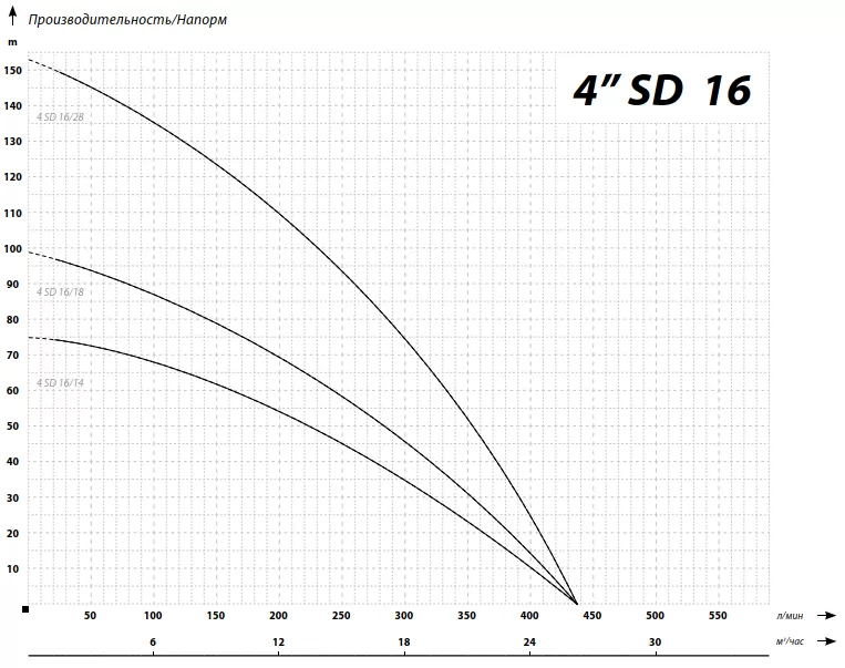 Трехфазный глубинный погружной насос IBO 4SD 16/28 (380В) диаметром 98 мм с повышенной устойчивостью к песку. Насос IBO 4SD 16/28 (380В) доступен к покупке с двигателями IBO и итальянскими двигателями IBO ITALY. В насосе IBO 4SD 16/28 (380В) используется технология «плавающих лопастных колес», а также для основных рабочих элементов насоса применяются износостойкие материалы: латунный нагнетательный патрубок, корпус, вал и сетка фильтра выполнены из нержавеющей стали AISI 304 / а также лопастные колеса выполнены из высококачественной пластмассы, Благодаря этому насос IBO 4SD 16/28 (380В) имеет повышенную стойкость к песку. Насос комплектуется кабелем 1 м, по желанию его можно нарастить до нужного размера. Скважинный насос IBO 4SD 16/28 (380В) имеет отличные характеристики. Напор насоса в максимальной точке составляет 150 м, а производительность достигает максимального показателя в 24.48 м³/час. Мощность двигателя составляет 7500 Вт, то вполне неплохо для насоса с такими напорно-расходными характеристиками. Насосы серии SD марки ИБО были первыми насосами на рынке, названными «анти–песочными». Они по прежнему являются одними из немногих скважинных насосов на рынке, которые имеют конструкции с такой высокой устойчивостью к песку. Максимальное содержание песка в воде – до 5%. Насос IBO 4SD 16/28 (380В) можно применять как аналог насосов ЭЦВ.