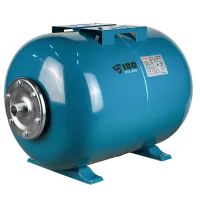 Горизонтальный мембранный бак для воды IBO объемом 50 литров. Бак выполнен из стали и покрыт специальным антикоррозионным составом. Мембрана бака выполнена из пищевой резины на основе бутилкаучука. Бак снабжен приварной площадкой для установки поверхностного насоса. В нижней части бака установлены металлические кронштейны с целью крепления бака к поверхности.