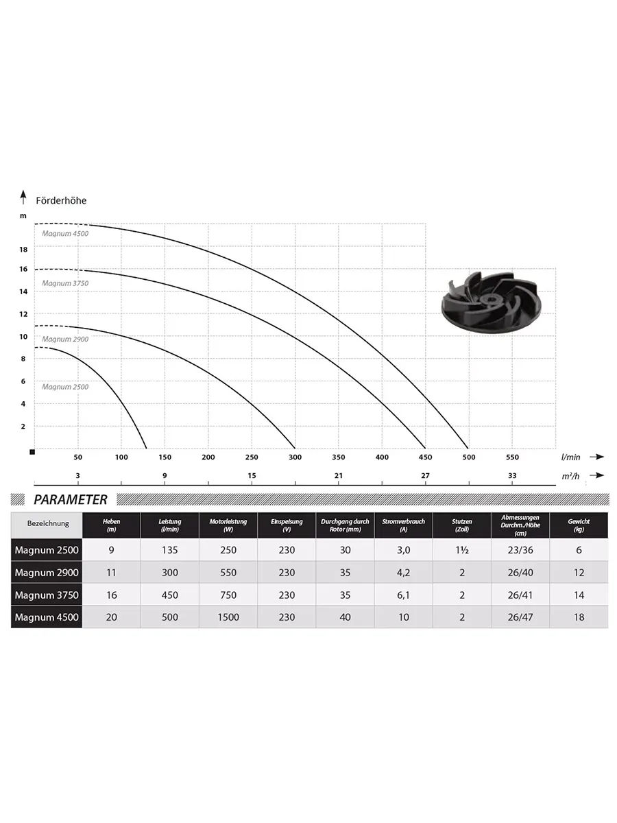 Графические характеристики фекального насоса IBO MAGNUM 2500