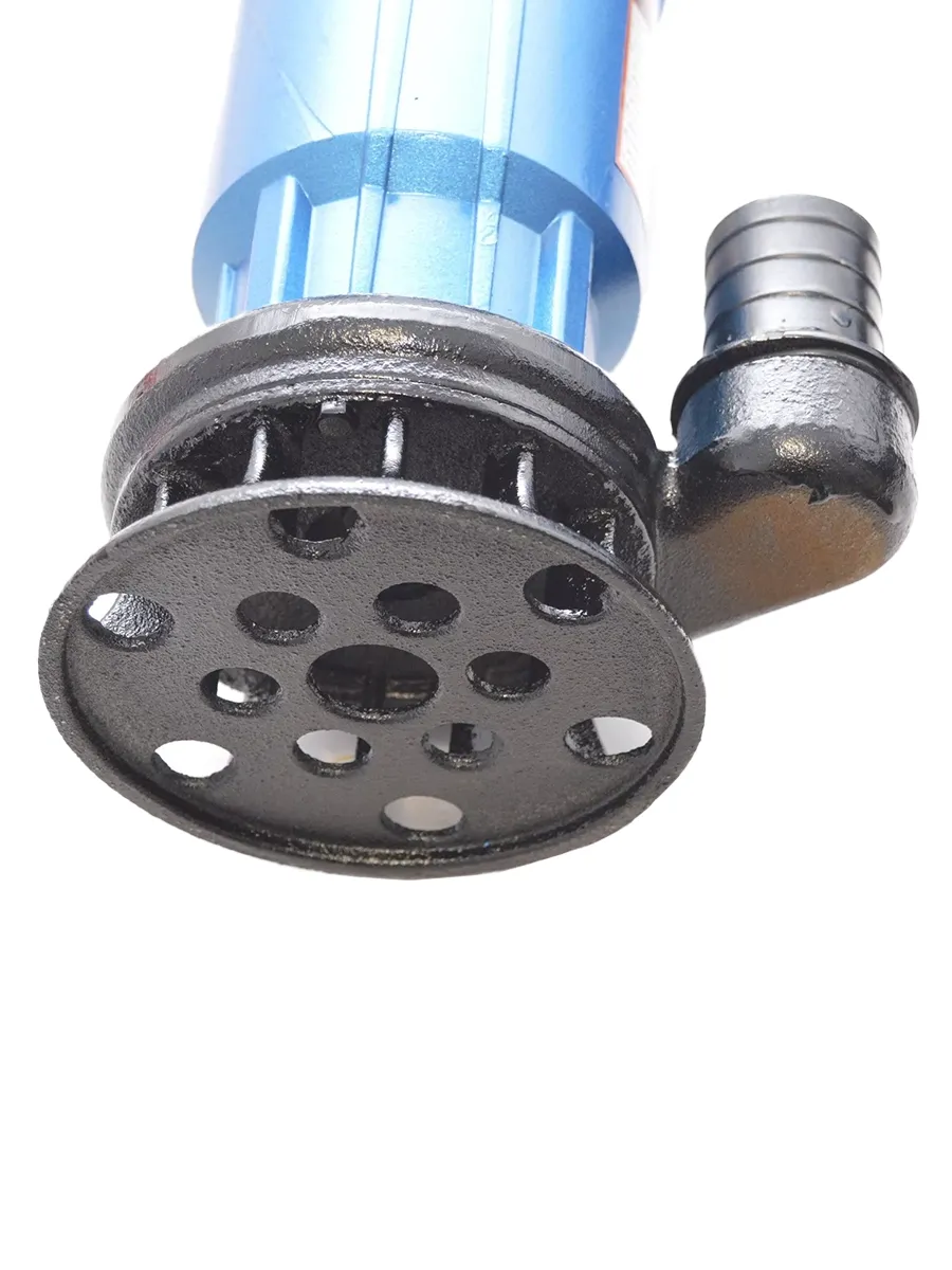 Представленный насос представляет собой типичное устройство для перекачки жидкостей. Он состоит из двух основных компонентов: гидравлической части, отвечающей за перекачку жидкости, и электродвигателя, обеспечивающего привод насоса. Описанный насос использует однофазный асинхронный электродвигатель с пусковым конденсатором. Это типичный выбор для маломощных насосов, работающих от однофазной сети. Электродвигатель размещен в закрытом кожухе, что предотвращает попадание жидкости и защищает его от повреждений. Кожух имеет рукоятку для удобства переноски и подвешивания насоса.