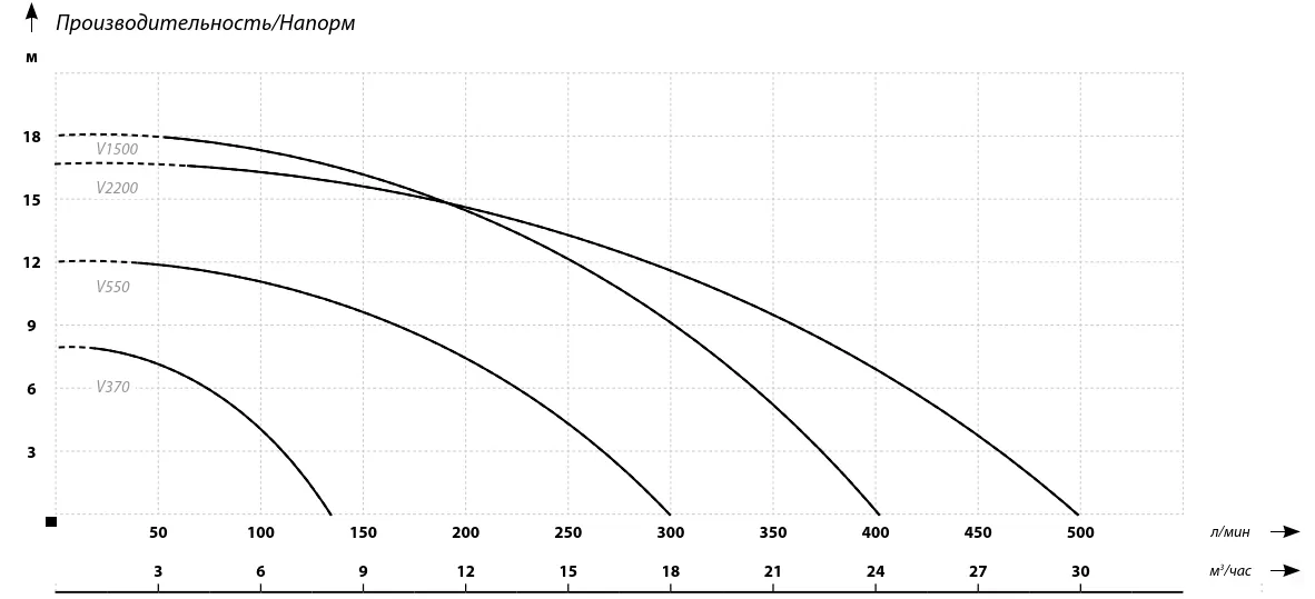 Графические характеристики фекального насоса IBO V 550