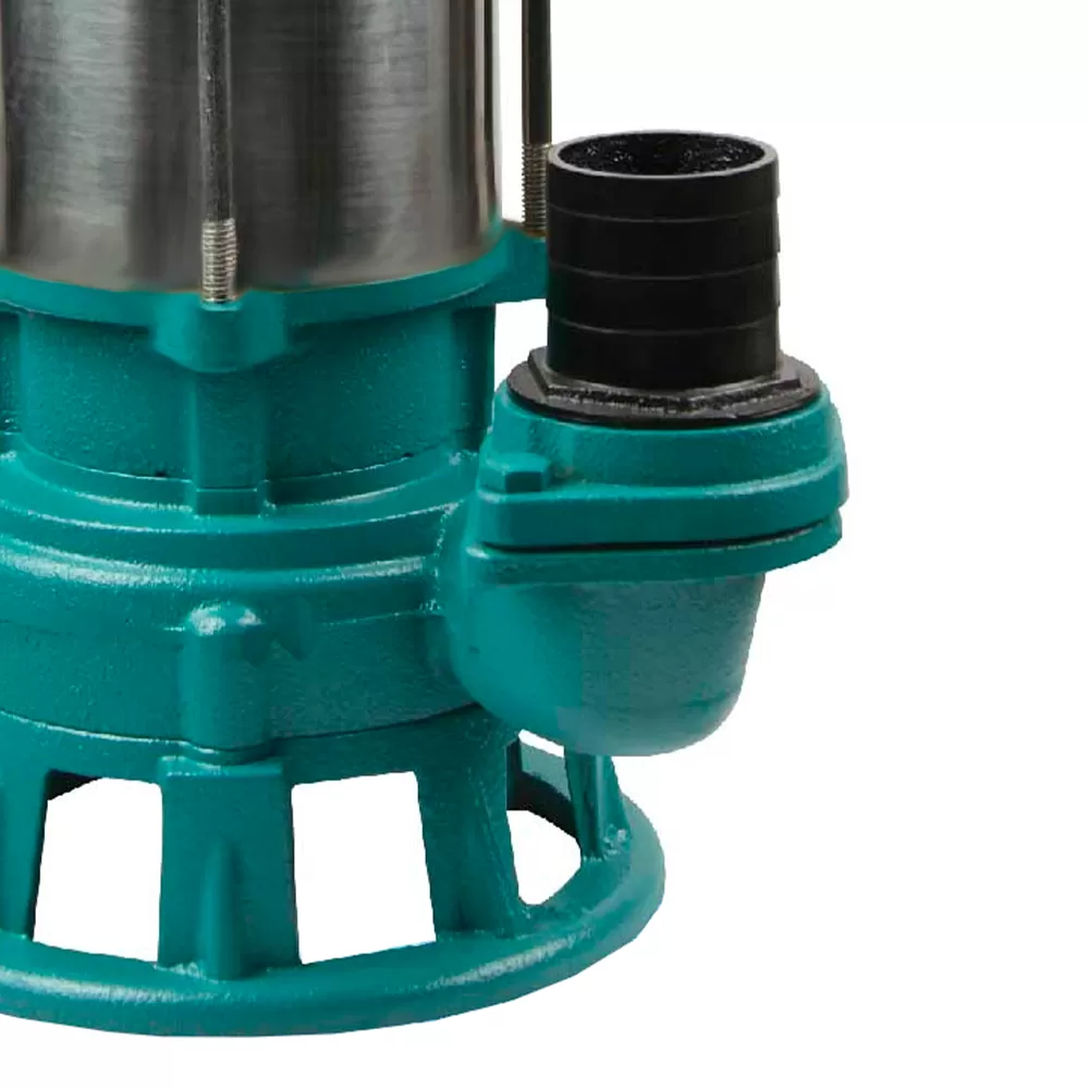 Корпус насоса разделен на гидравлическую часть и электродвигатель. Гидравлическая часть содержит насосную часть с рабочим колесом, которое закреплено на валу электродвигателя. Наличие вращающегося ножа на валу помогает измельчать волокнистые включения в перекачиваемой жидкости и предотвращает блокирование рабочего колеса. Перекачиваемая жидкость поступает в насосную часть через всасывающие отверстия, а затем под действием центробежной силы направляется к резьбовому напорному патрубку. На напорном патрубке устанавливается штуцер для присоединения шланга, что позволяет перенаправлять перекачиваемую жидкость в нужном направлении.