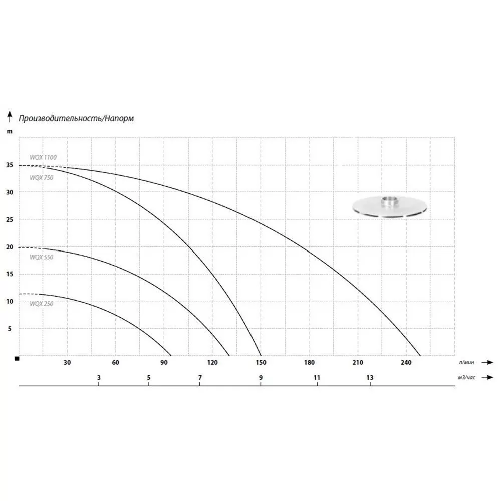 Графические характеристики дренажного насоса IBO WQX 250