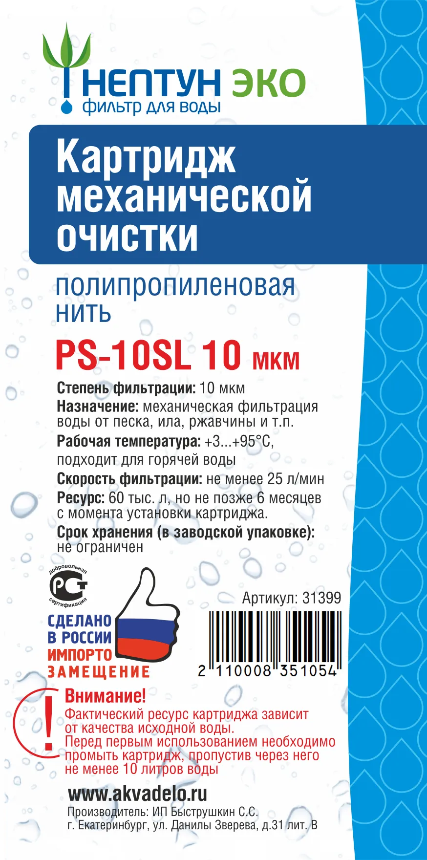 Картридж из полипропиленовой нити Нептун ЭКО PS-10SL 10 мкм