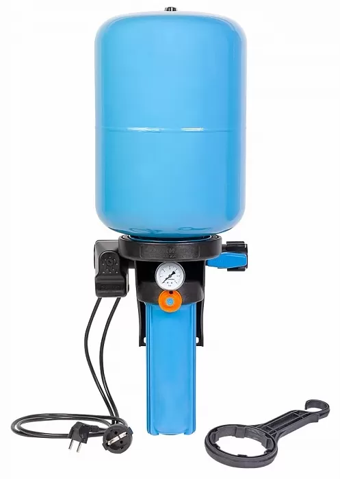 Предназначен для поддержания заданного давления в системах водоснабжения с предварительной фильтрацией воды. Легкий и удобный монтаж. Не требует дополнительной настройки. Автоматическое управление включением/выключением электронасоса. Полный комплект для автоматизации системы водоснабжения. Предварительная фильтрация воды. Календарь смены картриджей фильтра. Вся система устойчива к коррозии. Позволяют подключаться в любом удобном месте магистрали вне зависимости от направления потока воды. Объем бака 24 литра.