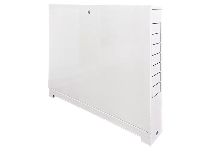 Шкаф коллекторный Wester ШРН-7 предназначен для монтажа в нем распределительных коллекторов для систем отопления и водоснабжения.Шкаф выполнен из стали, окрашен порошковой краской RAL 9016 с предварительным нанесением фосфатной пленки для придания антикоррозионных свойств изделию. В боковых стенках корпуса шкафа выполнена перфорация, сегменты которой удаляются в любом удобном месте для подсоединения трубопроводов. Внутри шкафа установлены универсальные профильные крепления, позволяющие располагать оборудование по всей высоте и ширине шкафа. Шкаф имеет регулировки по высоте до 40 мм за счет выдвижных ножек. Снабжены надежными креплениями к полу и стене. Для защиты от несанкционированного доступа шкаф оснащен внутренним замком.