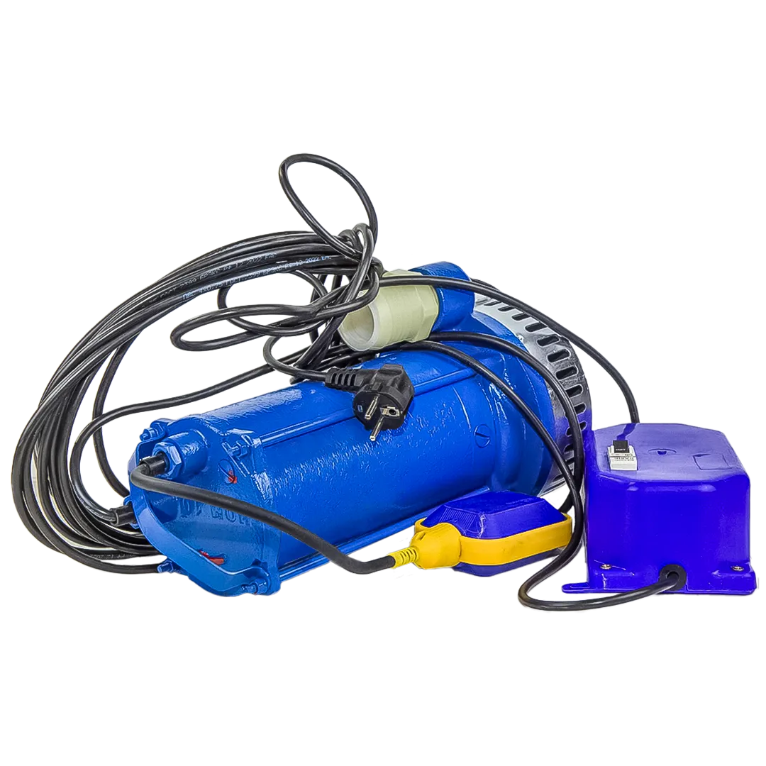 Электронасос представляет собой переносной моноблок, состоящий из погружного асинхронного двигателя и центробежного одноступенчатого насоса.