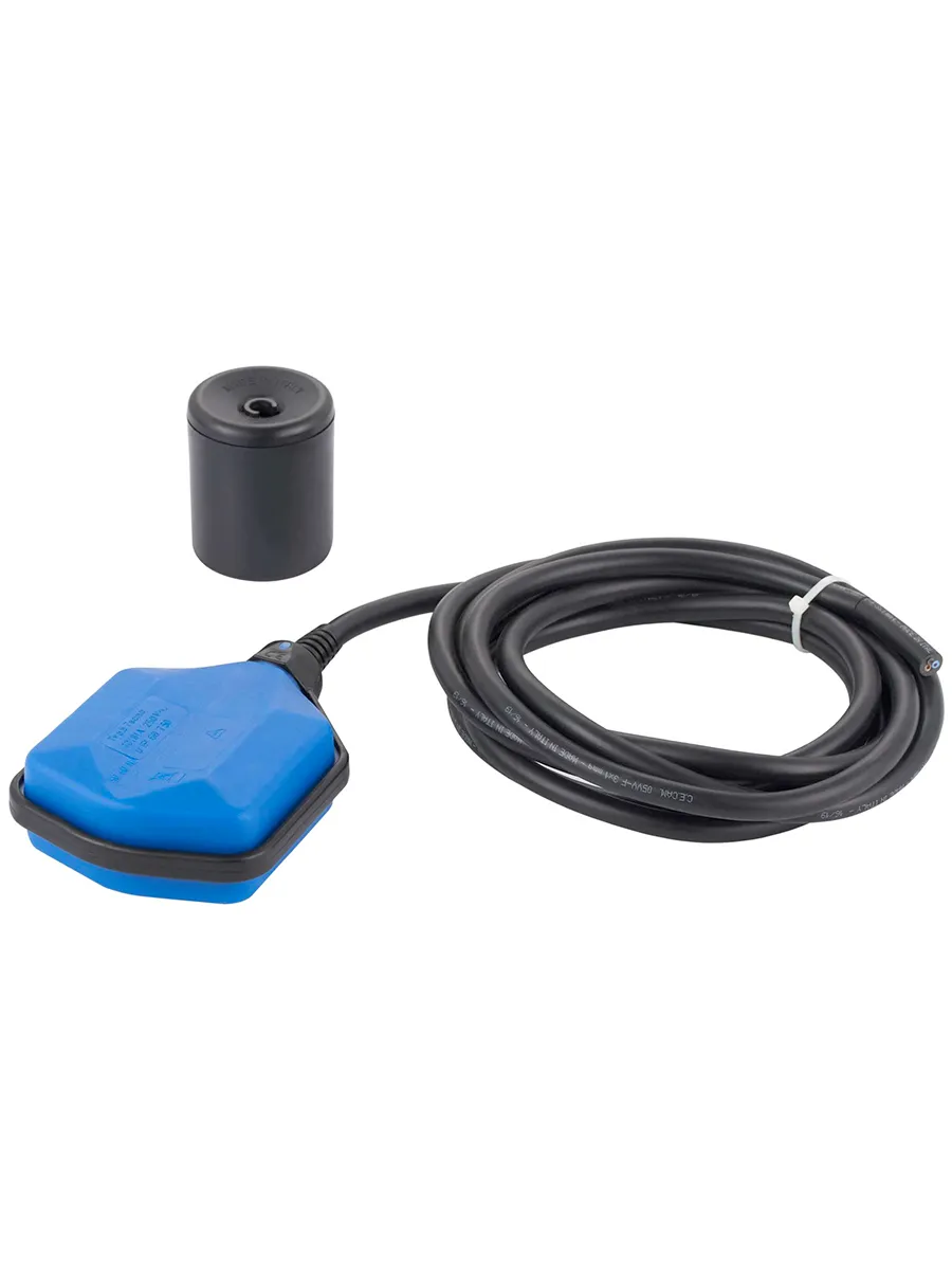 Поплавковый выключатель поставляется в комплекте с грузиком, с помощью которого настраивается момент срабатывания контактной группы. Длина кабеля 3 метра.