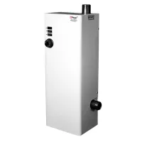 Нагрев циркулирующего через резервуар теплоносителя осуществляется погружными ТЭНами. Встроенный терморегулятор, датчик которого расположен в верхней части резервуара, непрерывно отслеживает температуру и автоматически поддерживает заданный пользователем режим, обеспечивая энергоэффективность и комфортный микроклимат. Верхний и нижний патрубки служат для врезки агрегата в контур системы отопления.