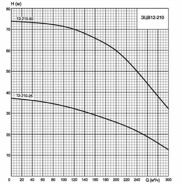 Графические характеристики ЭЦВ 12-210-25 нро