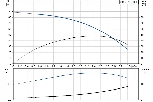 Графические характеристики Grundfos SQ 2-70 кабель 80 метров