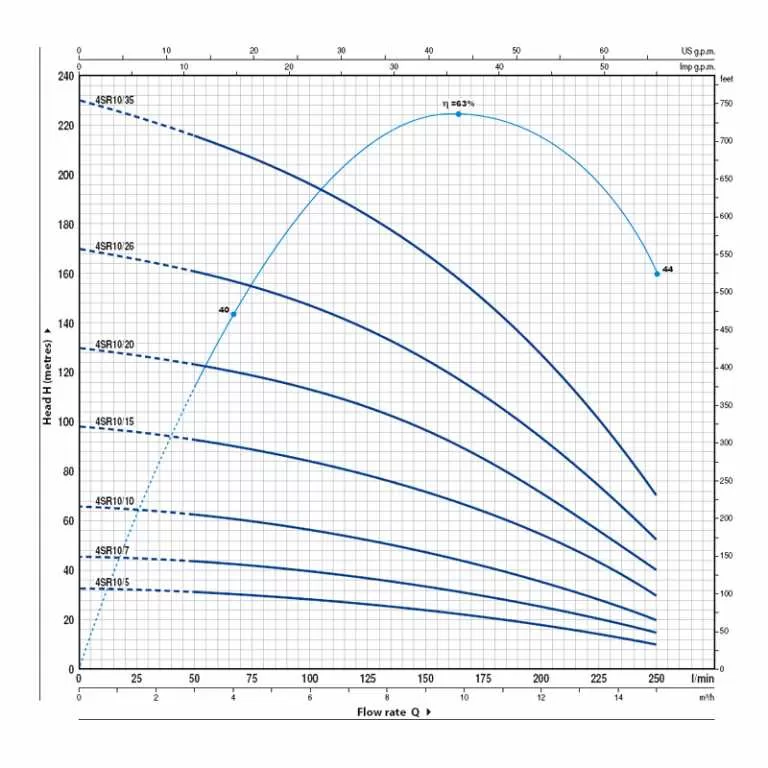 Глубинный насос Pedrollo 4SR10/10-P, отличается объективной ценой и надежной работой всех исполнительных механизмов. Насос Pedrollo 4SR10/10-P достаточно простой в эксплуатации и обслуживании, поэтому отлично подходит как для домашнего, так и промышленного применения.В основе работы Pedrollo 4SR10/10-P лежит конструктивно простой, но функционально успешный многоступенчатый центробежный принцип. Электрический двигатель подключается к агрегату через суппорт, в соответствии с нормативами международного стандарта NEMA. Мощность электродвигателя насоса составляет 2200 Вт . И при таких показателях мощности насос обладает максимальным напором в 66 метров и максимальной производительностью 15 м3/час. Функционирование Pedrollo 4SR10/10-P идентично большинству устройств, основанных на центробежных механизмах подачи воды. Жидкость втягивается в корпус устройства благодаря центробежной силе, создаваемой рабочими колесами, которые также проталкивают воду через все тело насоса "диаметр насоса 4"", а затем в нагнетающий патрубок "диаметр патрубка 2"", через который вода и попадает к конечному потребителю. Главной особенностью насоса Pedrollo 4SR10/10-P является малый диаметр корпуса агрегата, а также то, что перекачиваемая вода не касается стенок двигателя. Между жидкостью и корпусом движущей установки располагается прослойка из технологического масла, которая и предотвращает попадание мелких частиц непосредственно в исполнительный механизм. В то время как охлаждение электропривода происходит за счет верхнего способа забора воды, т.е. перекачиваемая жидкость находится всегда выше уровня расположения двигателя. Насос питается от сети в 380 в и комплектуется кабелем 1.5 метров.