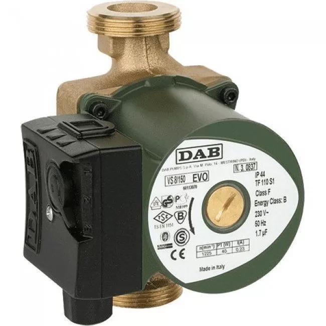 Циркуляционный насос DAB VS 16/150 M используется, главным образом, для циркуляции жидкости в системе горячего водоснабжения (ГВС). Насос имеет бронзовый корпус, поскольку жидкость в системе ГВС является корозионно-активной ввиду высоких температур и большого количества растворенного кислорода. Насос DAB VS имеет одну фиксированную скорость вращения и подбирается (исходя из обеспечения необходимых гидравлических характеристик, а именно преодоления сил гидравлического сопротивления контура) под конкретный контур циркуляции. Подшипники насоса смазываются перекачиваемой жидкостью.