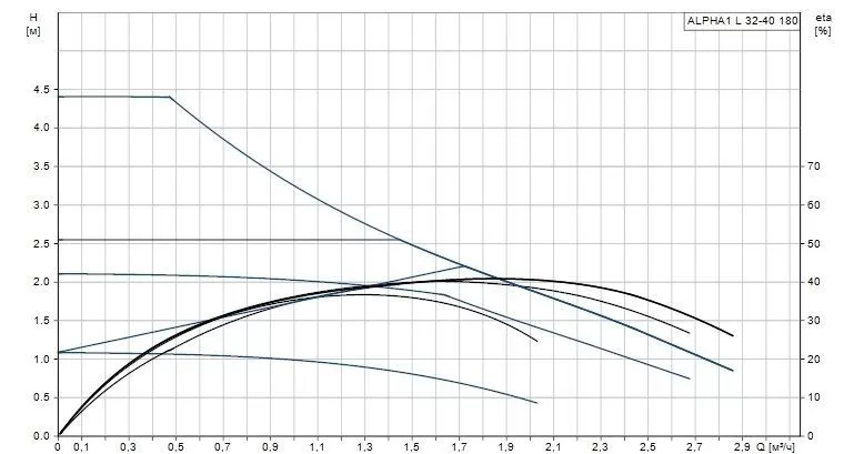 Циркуляционный насос Grundfos ALPHA1 L 32-40 используется для циркуляции воды или гликольсодержащих жидкостей в регулируемых системах отопления и в системах отопления с переменным расходом. Режим работы насоса: 3 фиксированные скорости, 2 режима постоянного давления, 2 режима пропорционально давления и режим управления по ШИМ-сигналу.