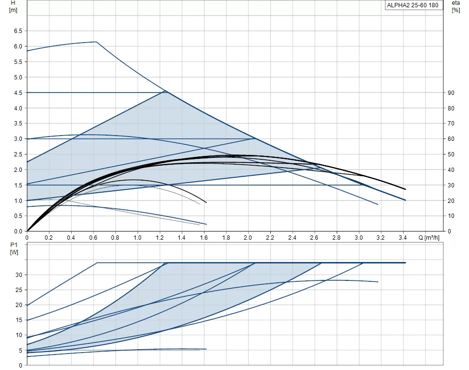 Циркуляционный насос Grundfos ALPHA2 25-60 180 используются для циркуляции воды или гликольсодержащих жидкостей в регулируемых системах отопления и в системах отопления с переменным расходом. Функция AUTOadapt ALPHA2 регулирует перепад давления в соответствии с текущими потребностями системы, нет необходимости регулировать насос самостоятельно – он все сделает за вас. Также есть 3 фиксированные скорости, 3 режима постоянного давления, 3 режима пропорционально давления.