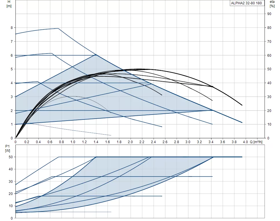 Циркуляционный насос Grundfos ALPHA2 32-80 180 используются для циркуляции воды или гликольсодержащих жидкостей в регулируемых системах отопления и в системах отопления с переменным расходом. Функция AUTOadapt ALPHA2 регулирует перепад давления в соответствии с текущими потребностями системы, нет необходимости регулировать насос самостоятельно – он все сделает за вас. Также есть 3 фиксированные скорости, 3 режима постоянного давления, 3 режима пропорционально давления.