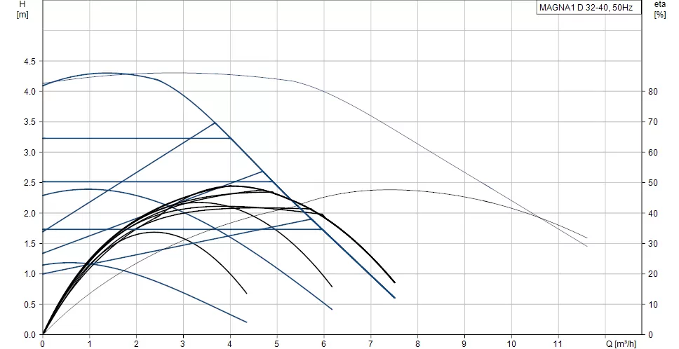 Циркуляционный насос Grundfos MAGNA1 D 32-40 180 может выступать в качестве: главного насоса, насоса для узлов смешения, насоса для контура поверхности нагрева, насоса для контура поверхности охлаждения. В отличие от насосов GRUNDFOS UPS, сдвоенный циркуляционный насос GRUNDFOS MAGNA1 D особо эффективен при работе в системах с переменным расходом. По сравнению со своим предшественником, GRUNDFOS MAGNA1 D имеет 9 режимов управления, которые позволяют подобрать наиболее оптимальный режим работы насоса в изменяющихся условиях эксплуатации, что способствует значимому снижению затрат на электроэнергию при эксплуатации насосов.