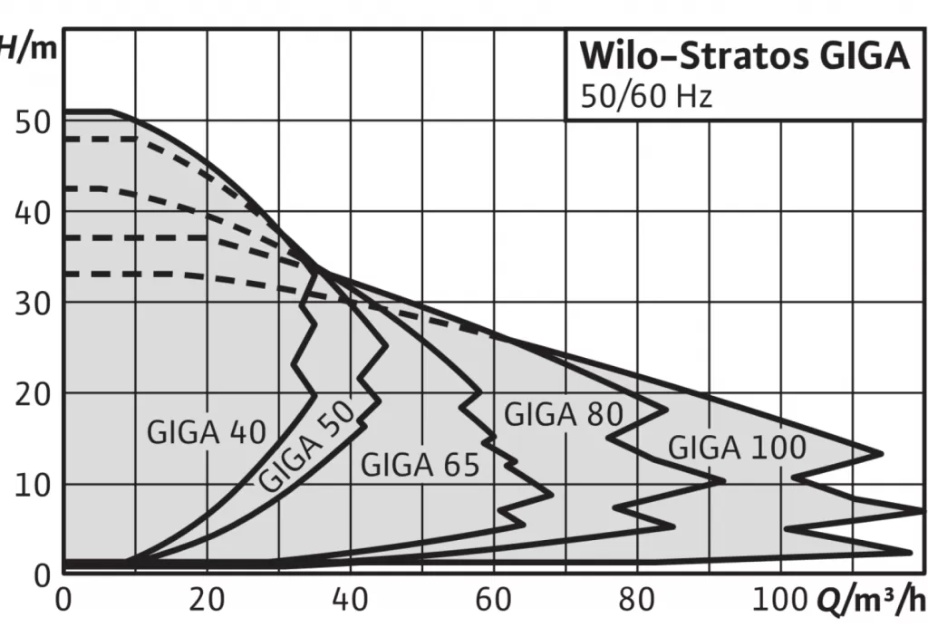 Высокоэффективный циркуляционный насос WILO STRATOS GIGA 40/1-25/1 с электронно-коммутируемым двигателем класса энергоэффективности IE5 согласно IEC 60034-30-2 и электронной регулировкой мощности с сухим ротором. Насос выполнен в качестве одноступенчатого низконапорного центробежного насоса с фланцевым соединением и скользящим торцевым уплотнением. Устройство Stratos GIGA предназначено для перекачивания воды систем отопления (согласно VDI 2035), холодной воды и водогликолевой смеси без абразивных веществ в системах отопления, кондиционирования и охлаждения.